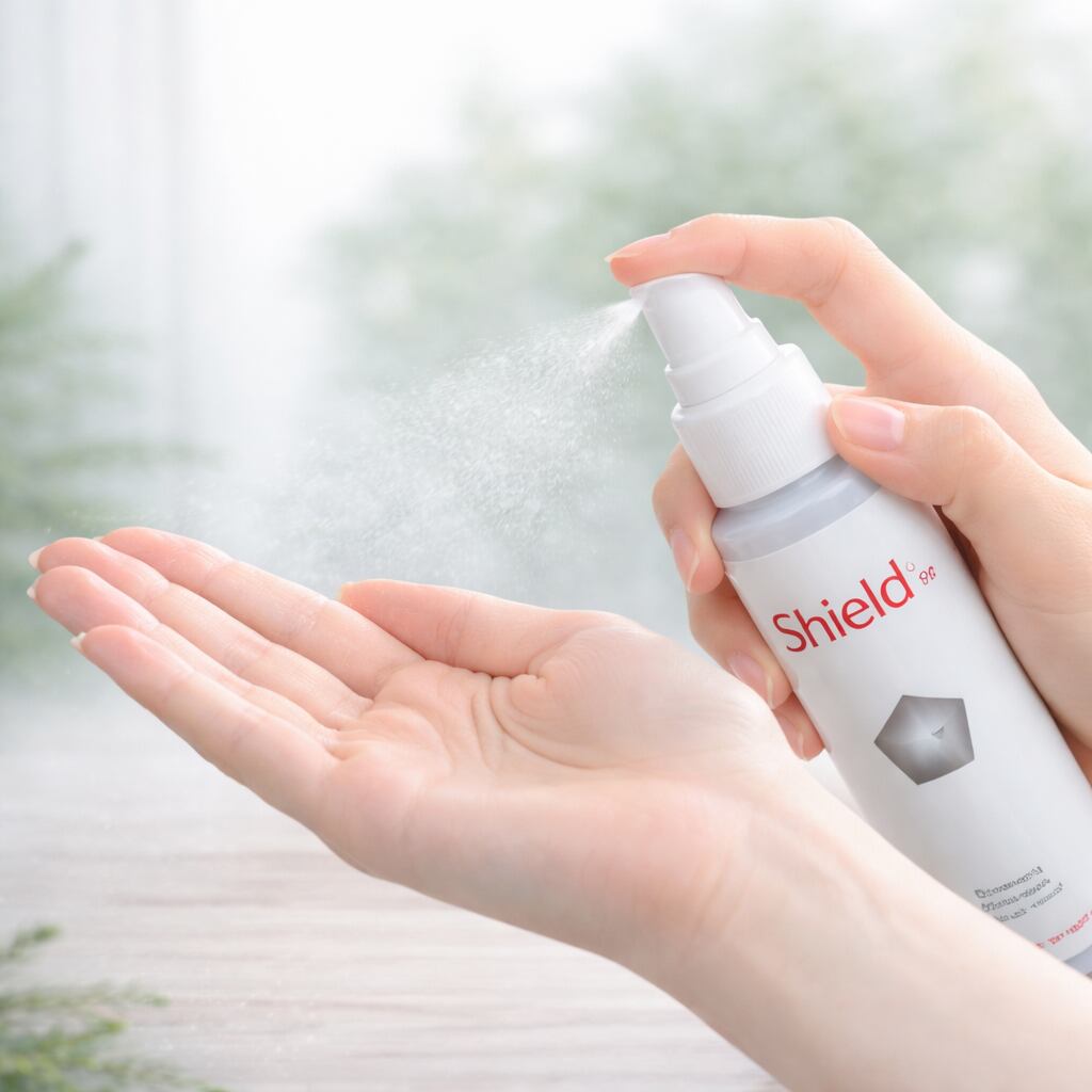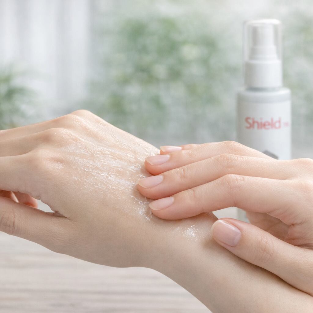 顔全体に適量をスプレーし、手のひらで包み込むようにやさしくなじませてください。